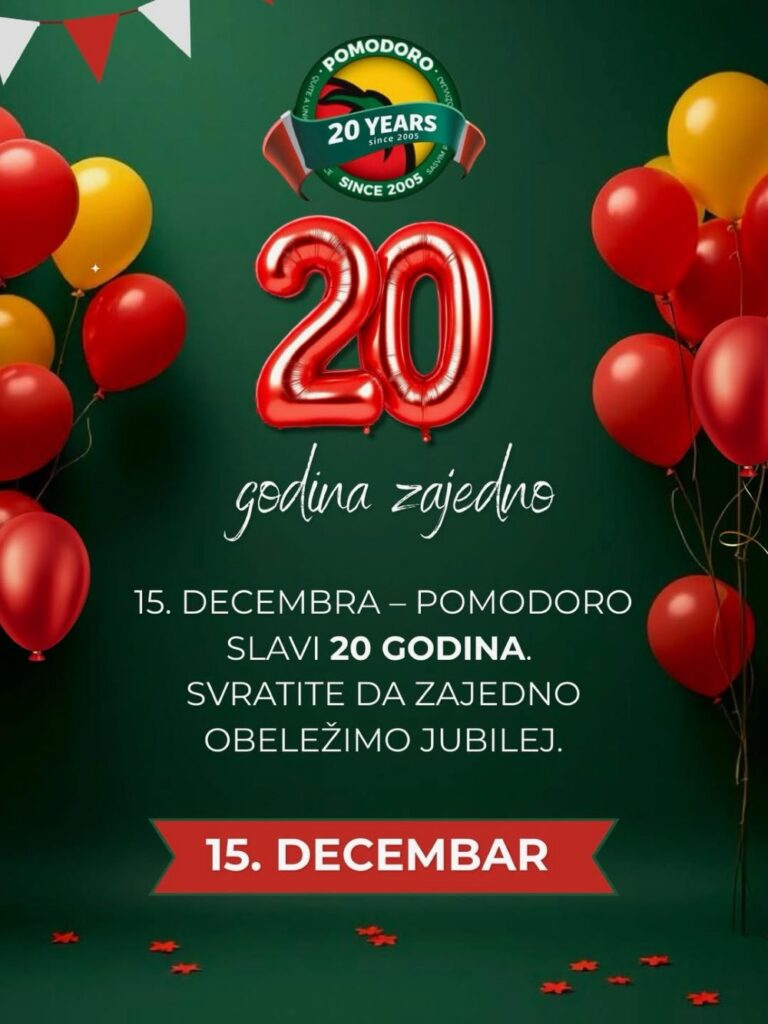 Povodom 20. rođendana, Pomodoro je pripremio i jedno malo iznenađenje. Diskretno, u svom stilu. Bez velike pompe, ali sa dovoljno pažnje da se jubilej obeleži onako kako i dolikuje – zajedno sa vama. Jer Pomodoro priča nikada nije bila samo priča o kuhinji, enterijeru ili jelovniku, već i priča o ljudima.